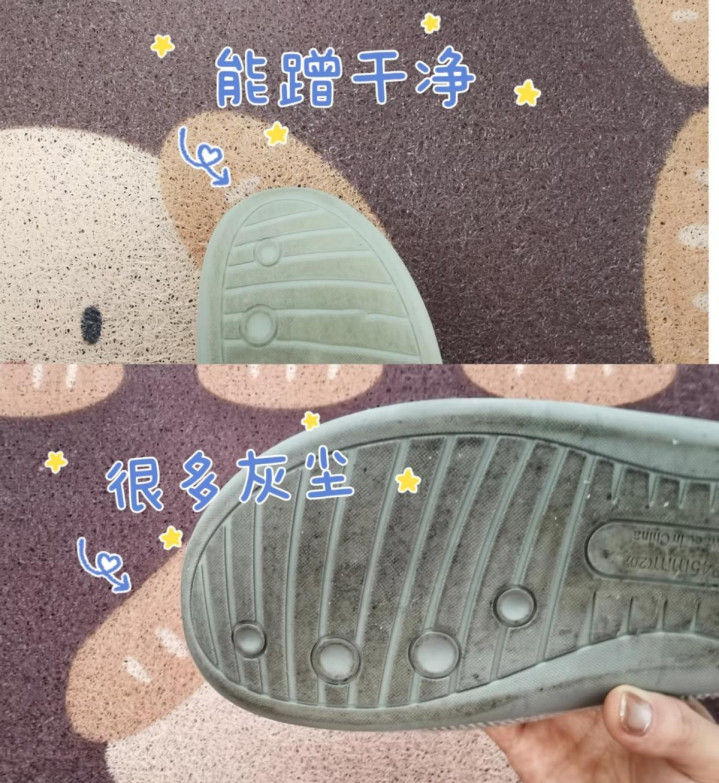 这种地垫特别厚实,脚感舒服,丝圈能把鞋底的灰尘牢牢锁住。